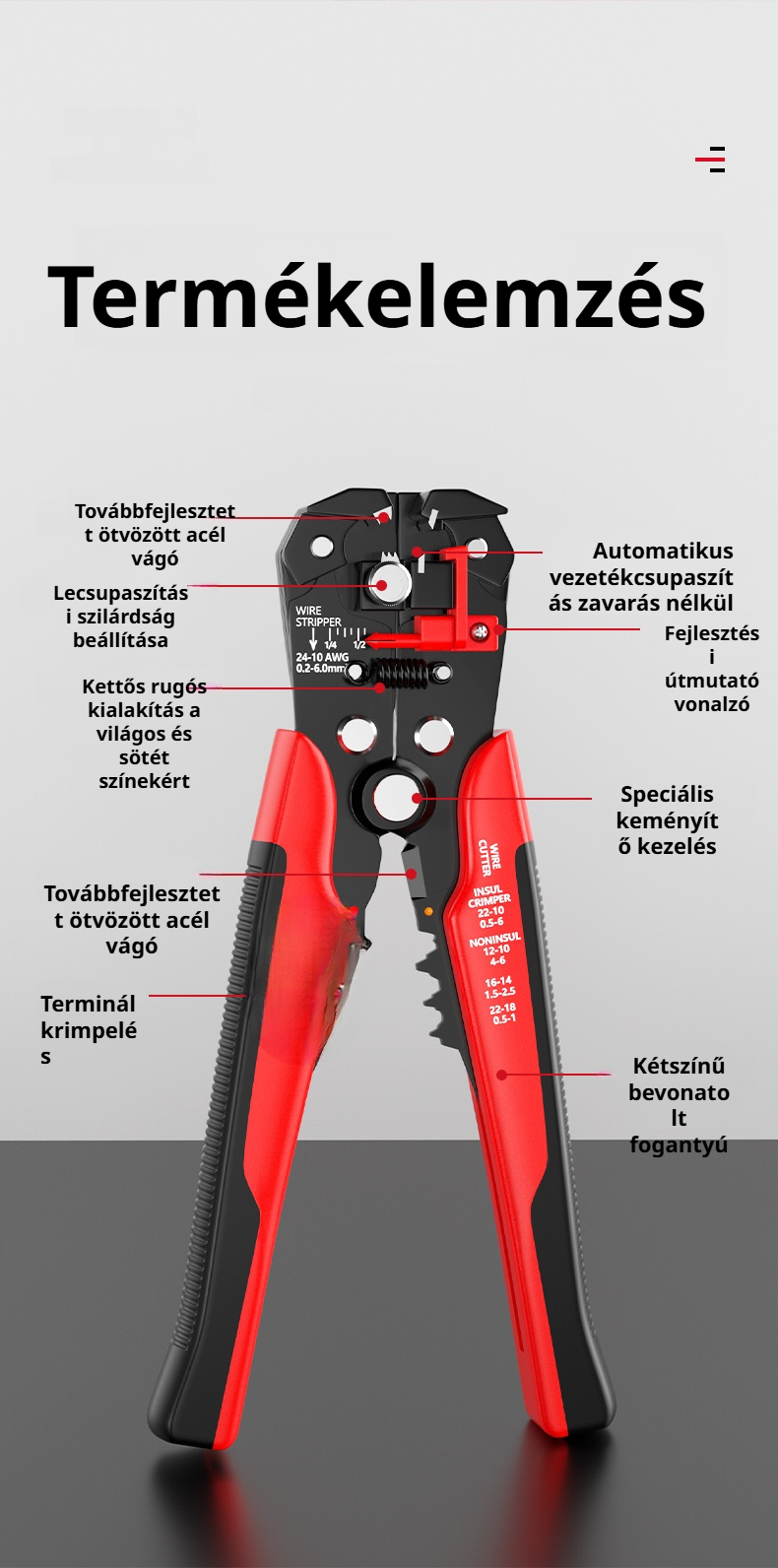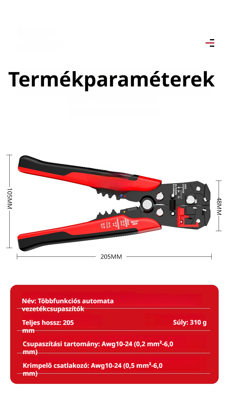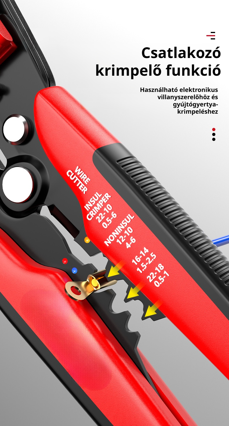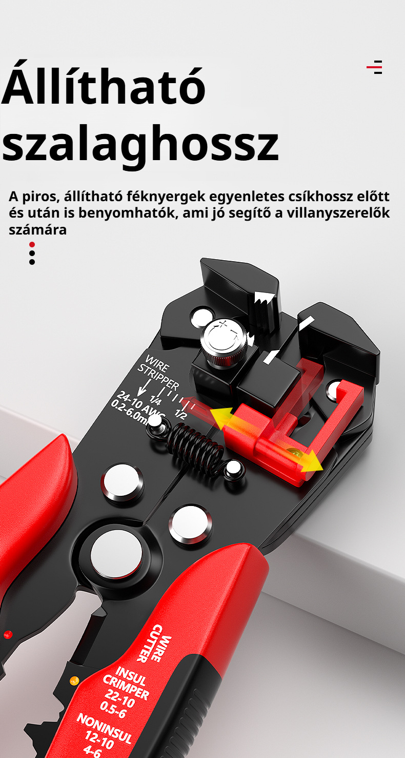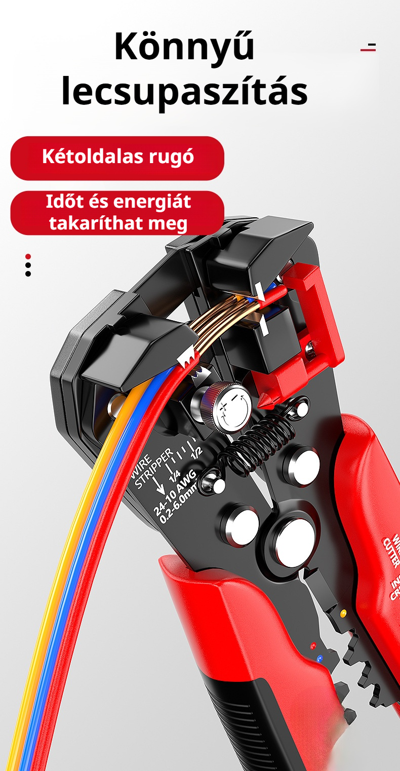 Állítható huzalcsupaszító és vágó, villanyszerelő szerszámkészlet